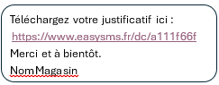 Avec un lien vers un fichier PDF stocké sur la plateforme Easy SMS consultable et téléchargeable pendant 15 jours maximum.