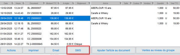 La fonctionnalité sms permet également, d'adresser à tous moments une notification personnelle et individuelle à un client, via sa fiche caisse.
